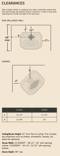 | Minimum Fireplace Depth | 19" | 22" |