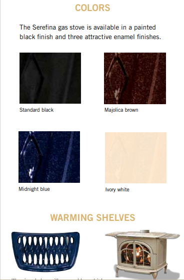 The Serefina™ free-standing stove features a commanding size that sets the mood of any room. Its unique design perfectly captures the tradition and grace of cast-iron stoves. And on those especially chilly winter days, the Serefina produces powerful heating that keeps your home warm and toasty. Add Warming Shelves along with some other options to add even more functionality to your fireplace
