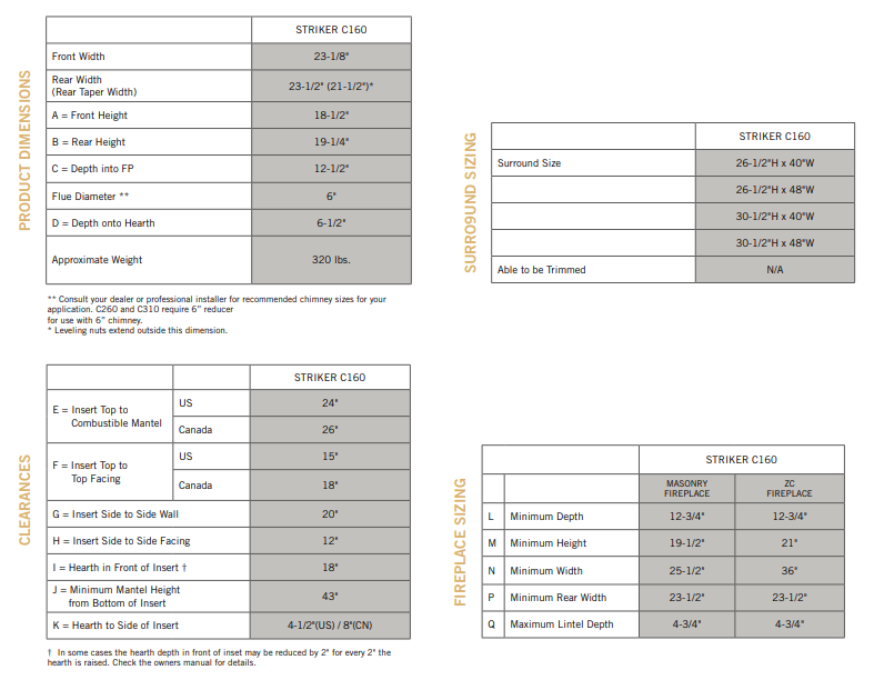 | Minimum Fireplace Depth |