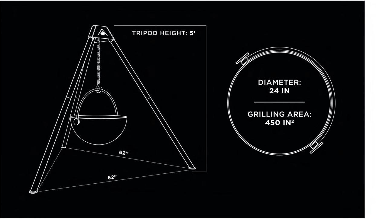 The Cowboy Cauldron The Dude 24" Tripod Wood Burning Fire pit Cooking Grill with Suspension Chain and Cover